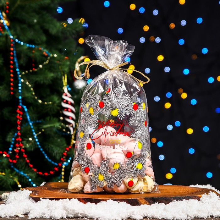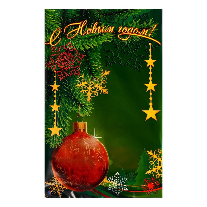 - Прочный полипропилен с фольгированным декором: Плотность 60 мкм обеспечивает устойчивость к разрывам, а блестящие узоры добавляют праздничный блеск. Дизайн без привязки к символу года — можно использовать несколько сезонов подряд.