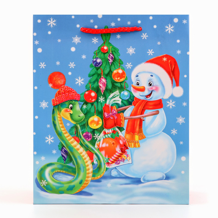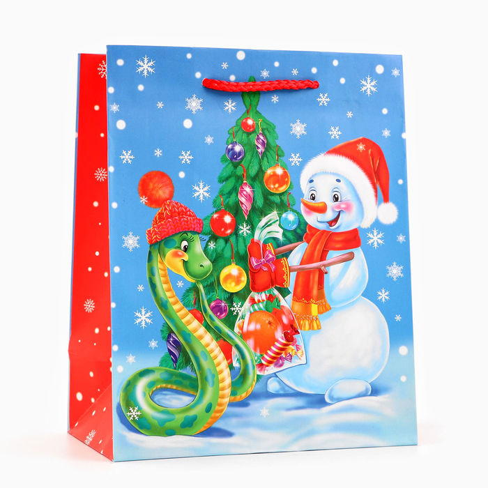 Пакет новогодний подарочный «Змейка и снеговик Символ года», упаковка, 18×22.3×10 см — Характеристики