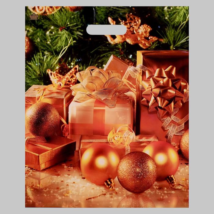 Пакет новогодний подарочный «Золотые шары», полиэтиленовый с вырубной ручкой, 45×38 см