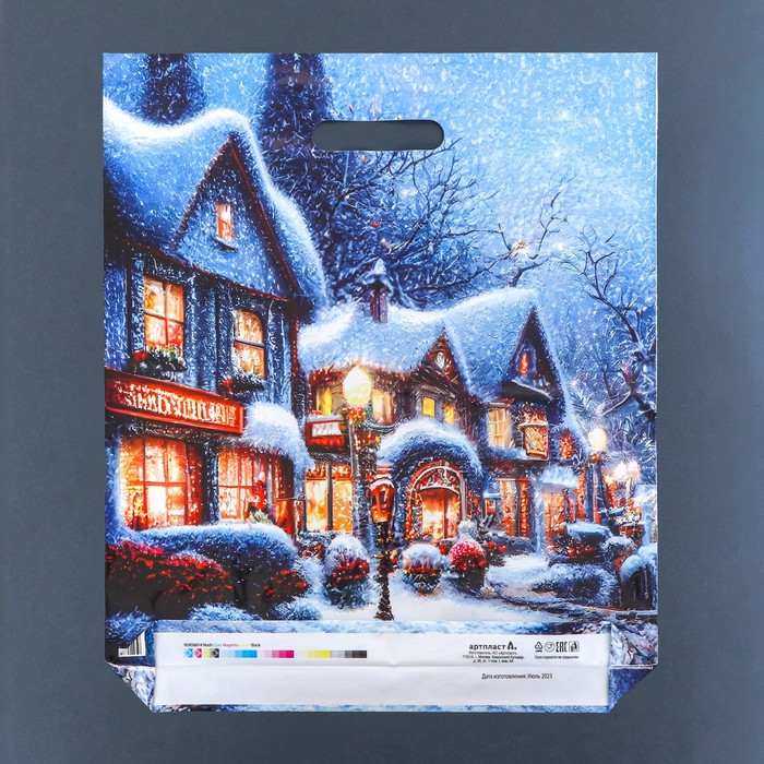 Пакет новогодний «Рождественская ночь», глянец полиэтиленовый с вырубной ручкой, 38×45 см, 60 мкм — Характеристики