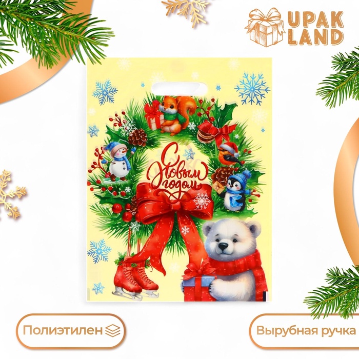 Пакет «Новогодний серпантин», полиэтиленовый с вырубной ручкой, 20×30 см — Характеристики