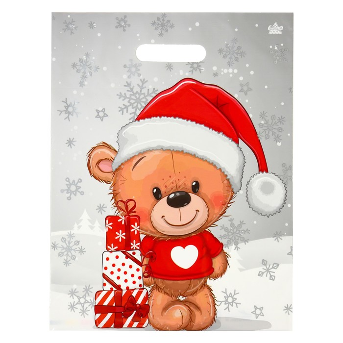 Пакет новогодний «Топтыжка», полиэтиленовый с вырубной неусиленной ручкой, 20×30 см, 30 мкм