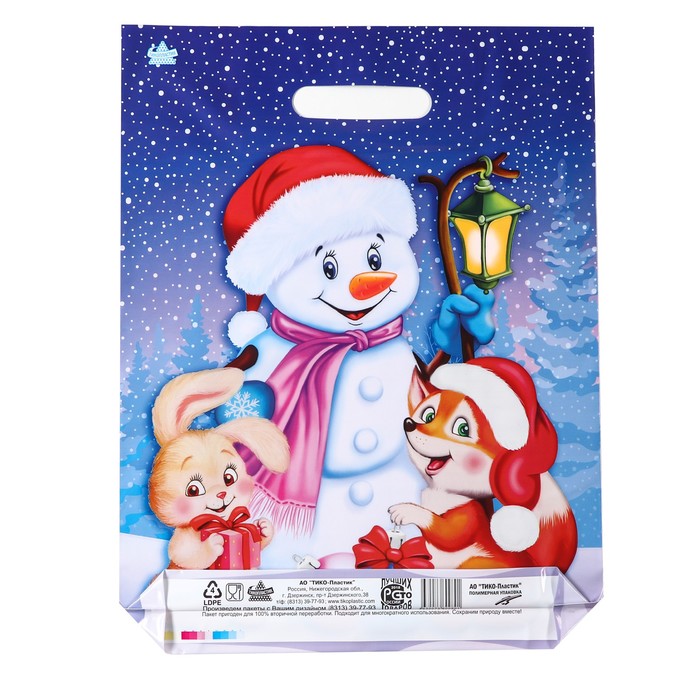 Пакет новогодний «Веселые друзья», полиэтиленовый с вырубной ручкой, 40×31 см — Характеристики