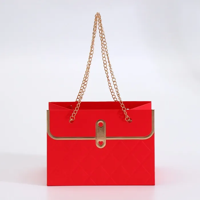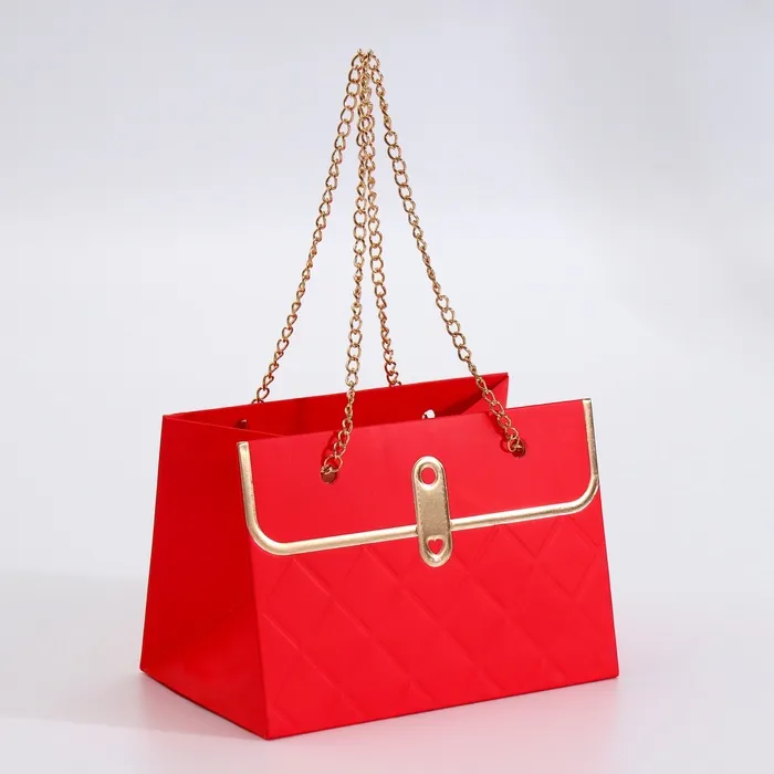 Яркий акцент для особенных букетов! Красный подарочный пакет для цветов с цепью — праздничная упаковка, которая превратит обычный букет в запоминающийся подарок. Золотое тиснение на насыщенном красном фоне выглядит нарядно и подходит для самых важных моментов.