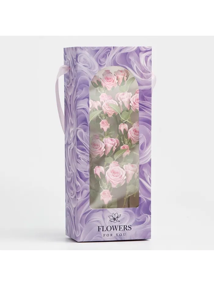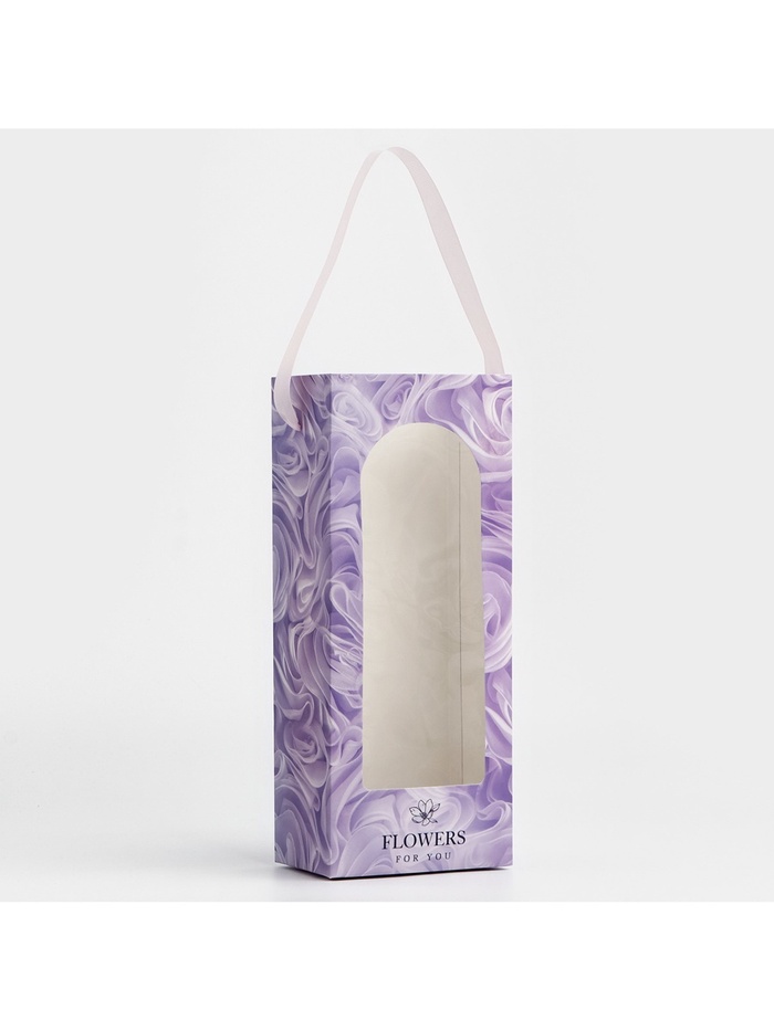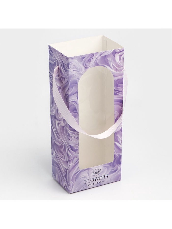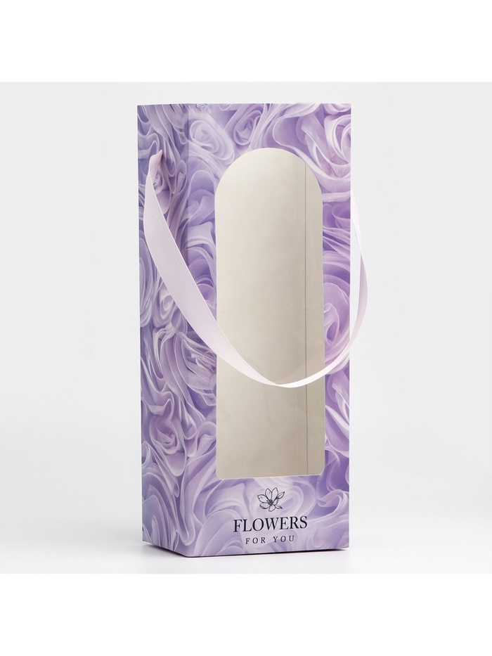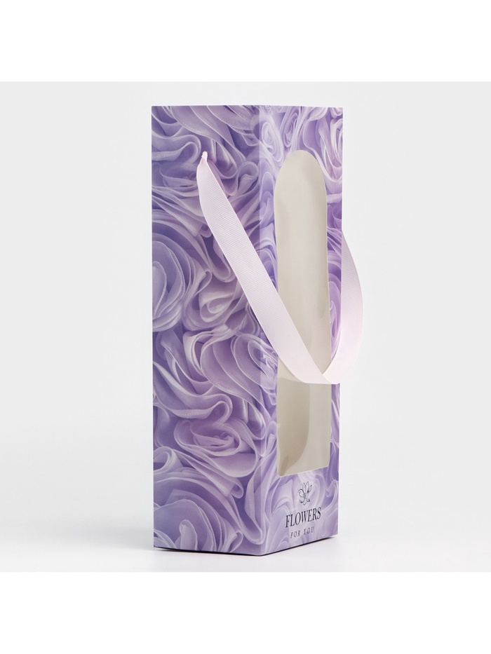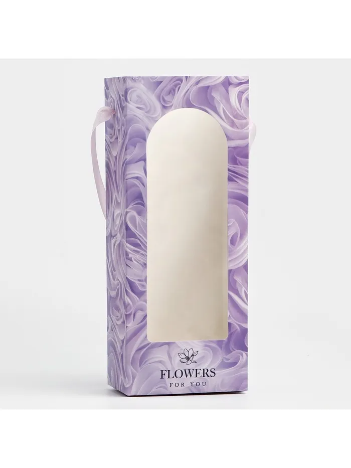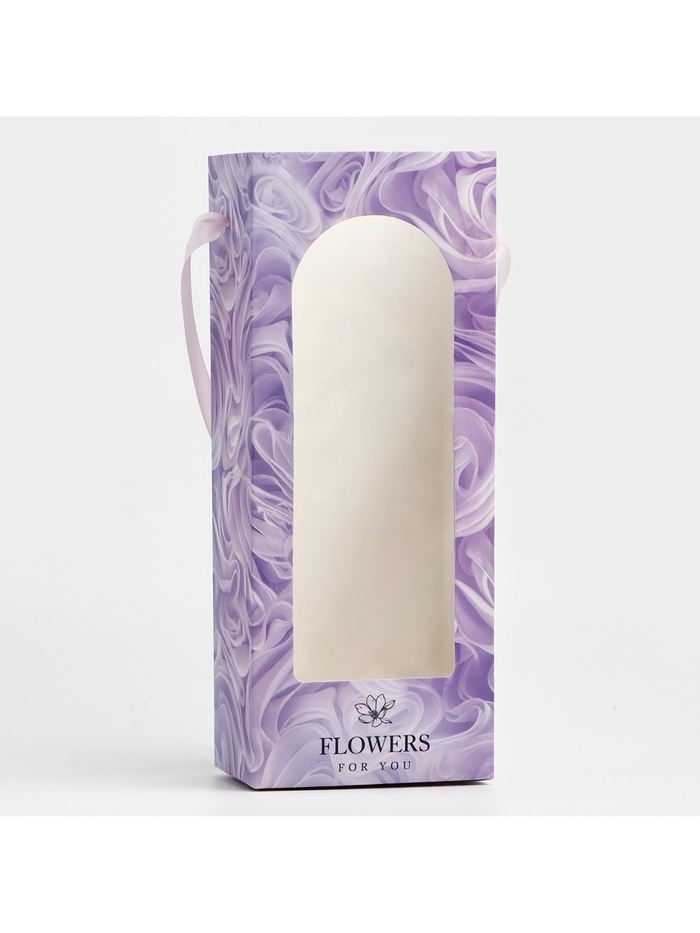 Пакет-переноска для цветов с пластиковым окном, Flowers, сиреневая, 30 х 12 х 8 см