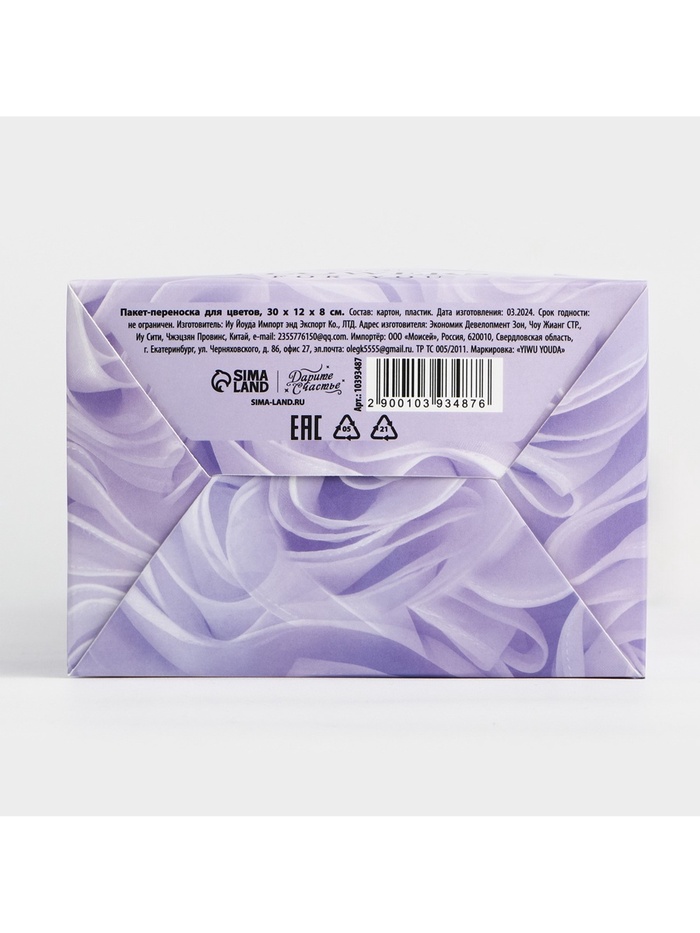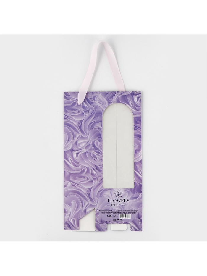 Пакет-переноска для цветов с пластиковым окном, Flowers, сиреневая, 30 х 12 х 8 см — Характеристики