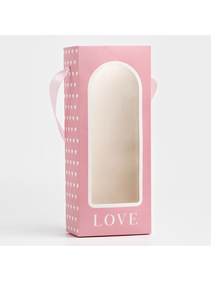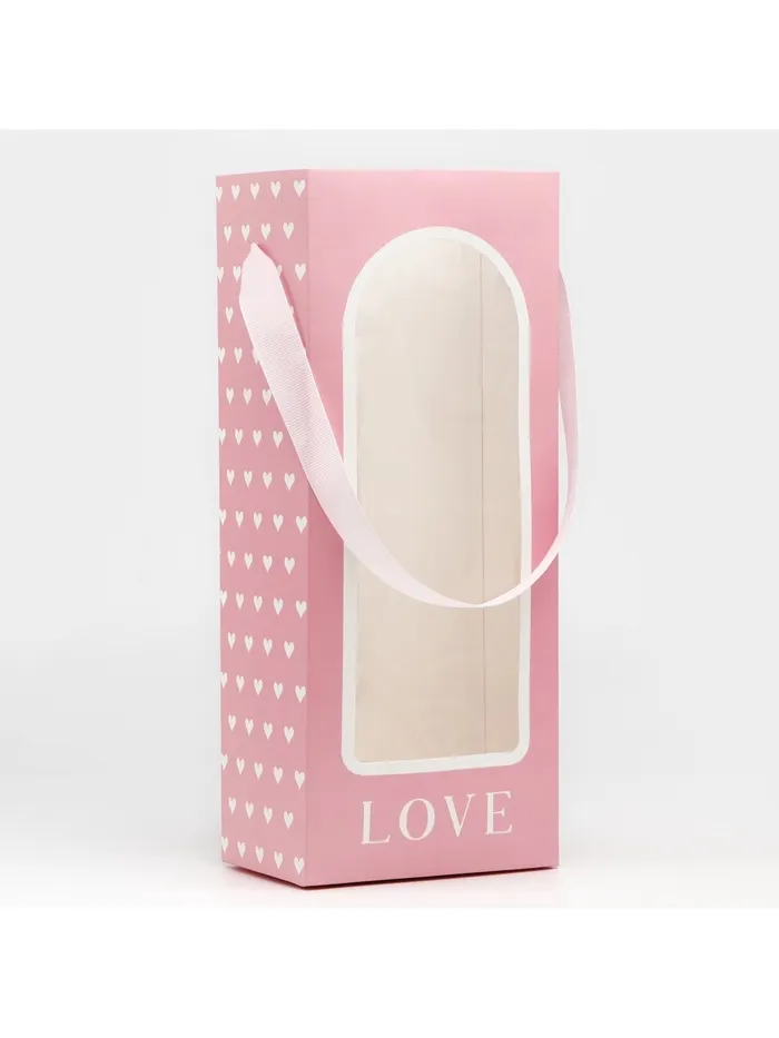 Пакет-переноска для цветов с пластиковым окном, Love, розовая, 30 х 12 х 8 см