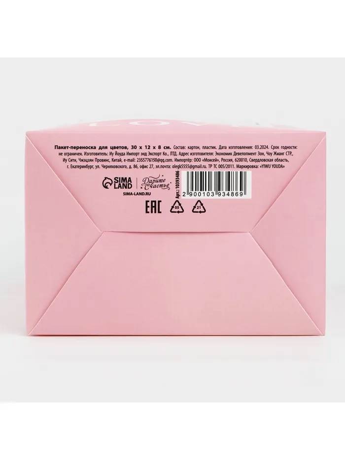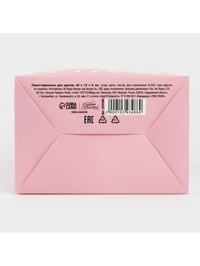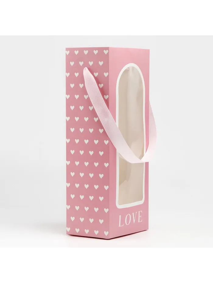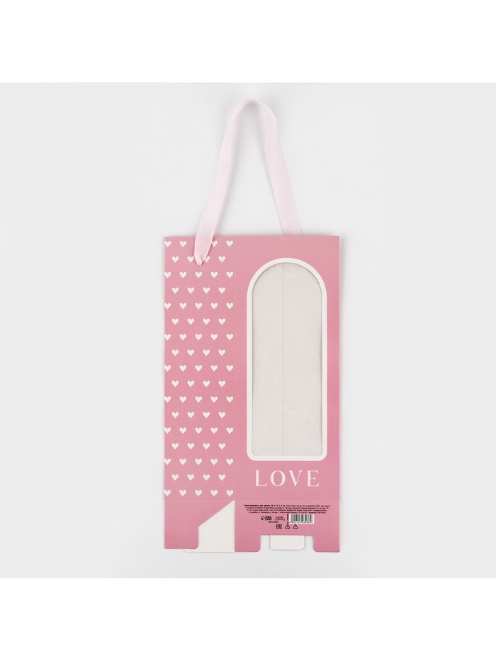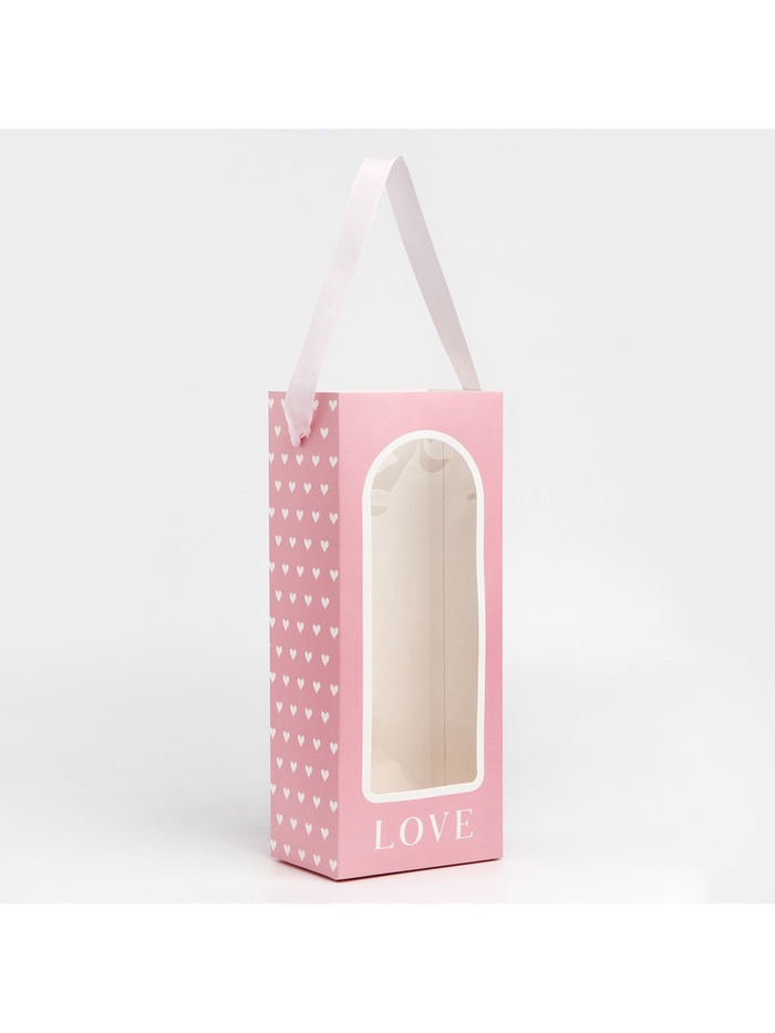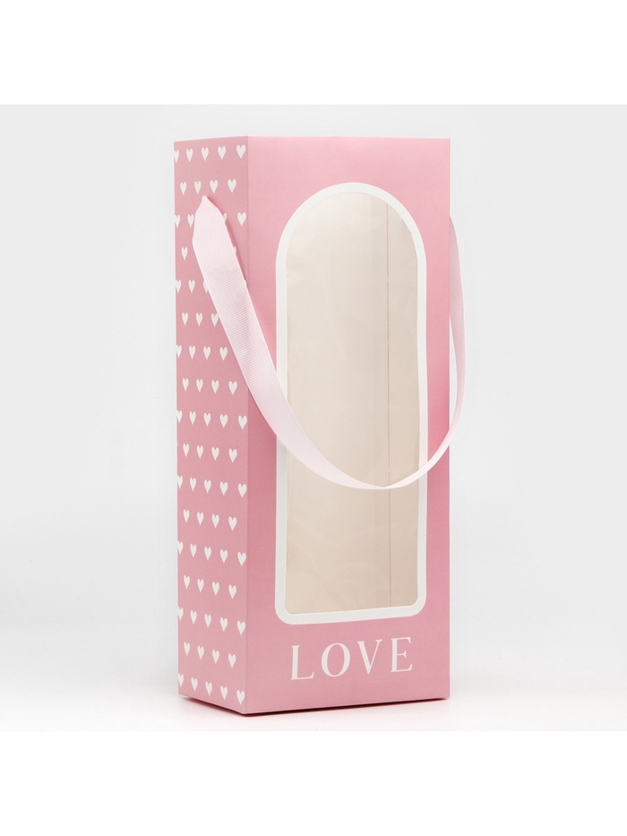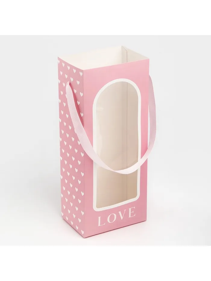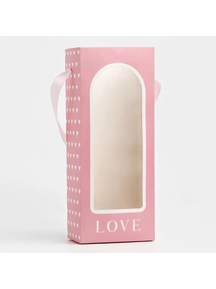 Пакет-переноска для цветов с пластиковым окном, Love, розовая, 30 х 12 х 8 см — Характеристики