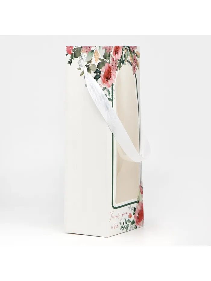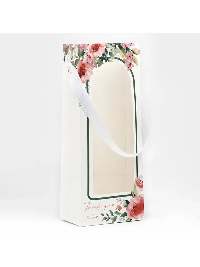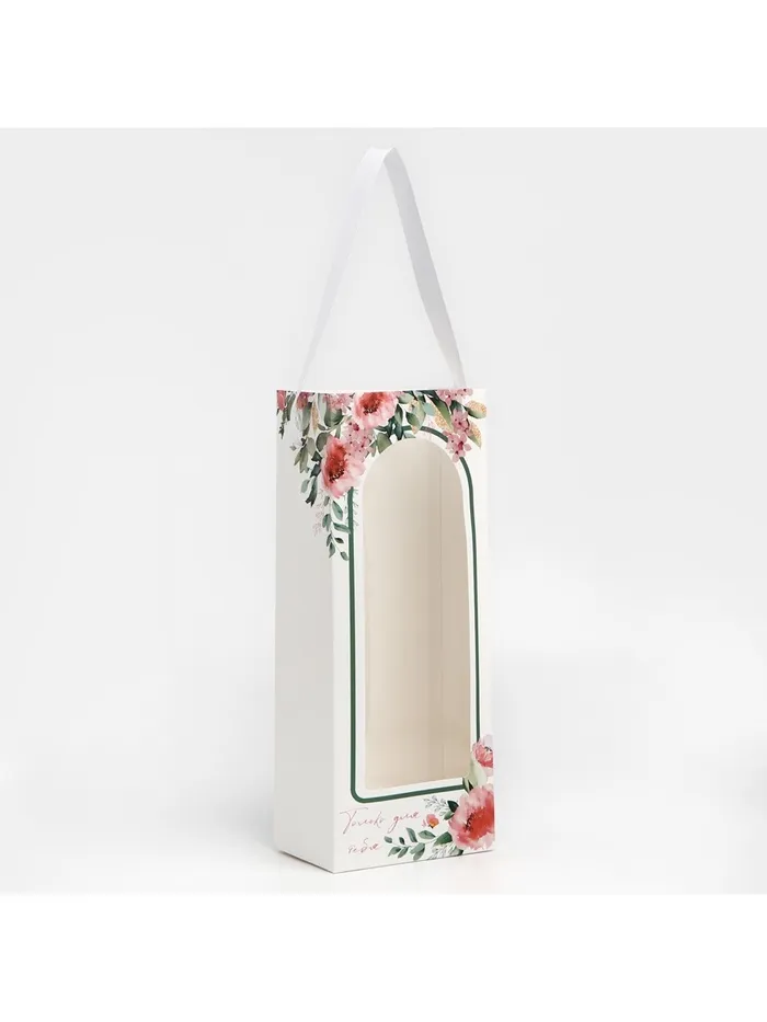 Пакет под бутылку с PVC окном, 12.5×8.5×36 см, белый