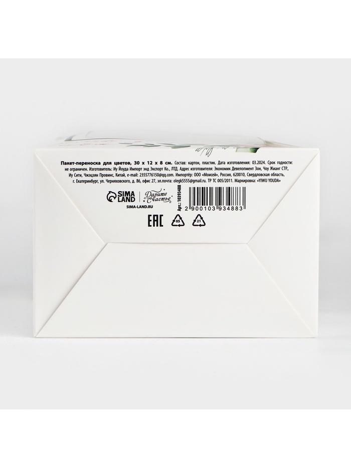Пакет-переноска для цветов с пластиковым окном, «Только для тебя», белая, 30 х 12 х 8 см — Характеристики