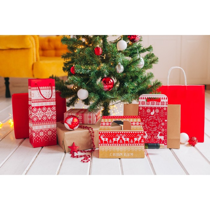 Пакет под бутылку крафтовый «Уютного нового года», 13 х 36 х 10 см — Характеристики