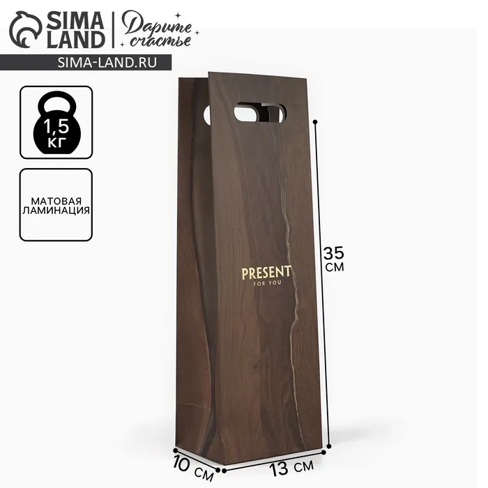 Пакет под бутылку «Лучший подарок», 13 х 10 х 36 см — Характеристики