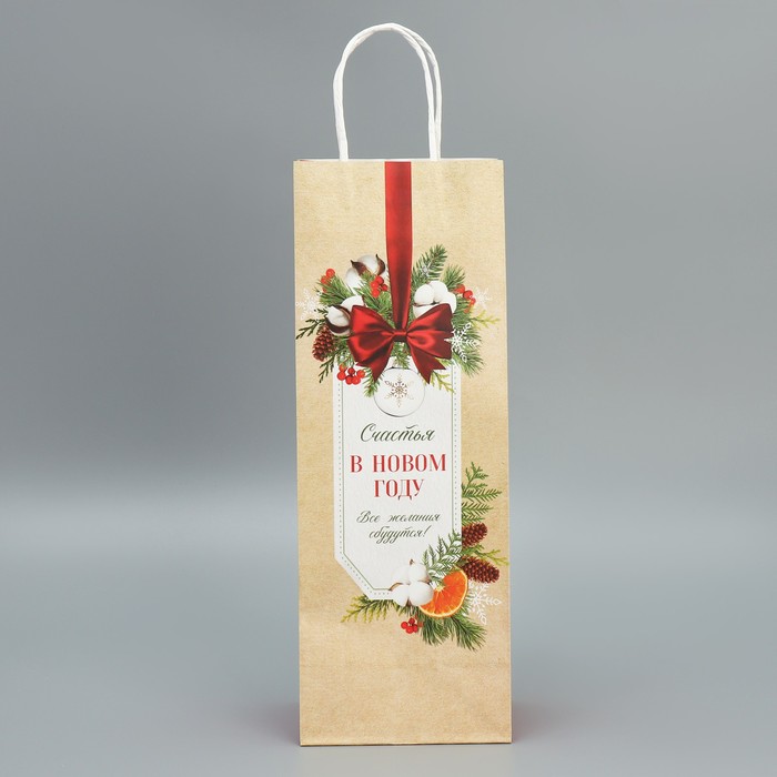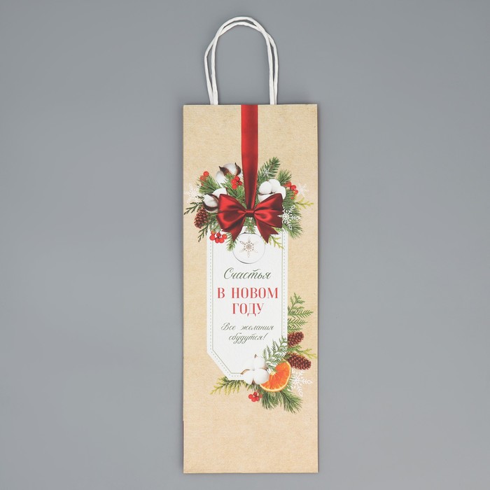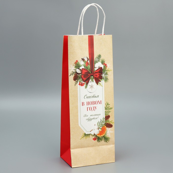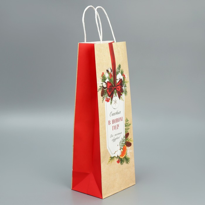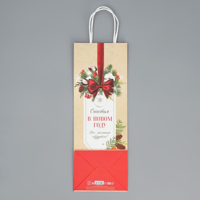 Пакет под бутылку «Новогодний подарок», 13 x 36 x 10 см — Характеристики