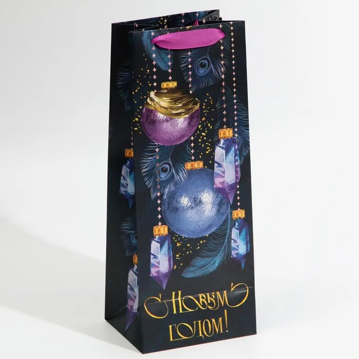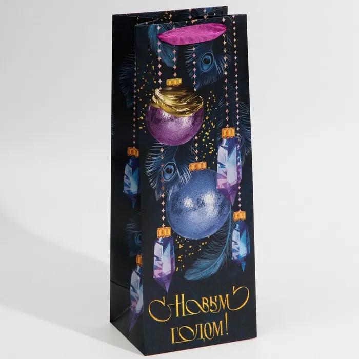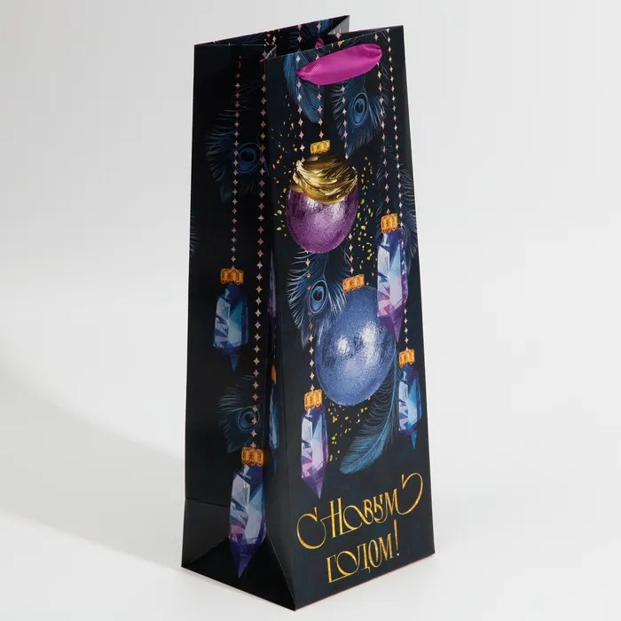Пакет под бутылку «Новый год», 13 х 36 х 10 см — Характеристики
