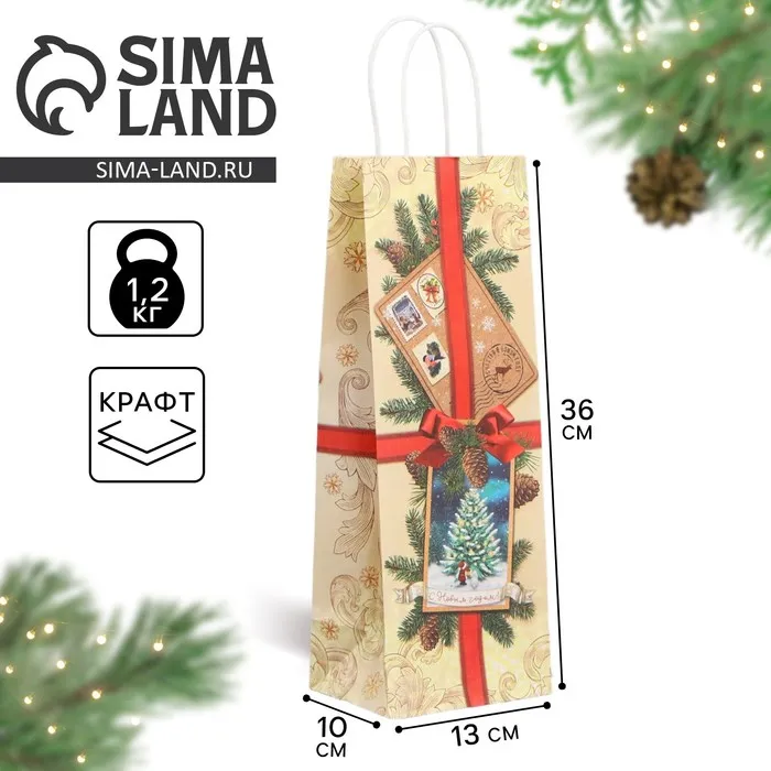 Пакет под бутылку «Почта», 13 x 36 x 10 см — Характеристики