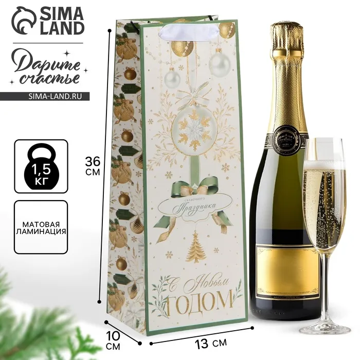 Пакет под бутылку «Счастливого праздника», 13 х 36 х 10 см — Характеристики