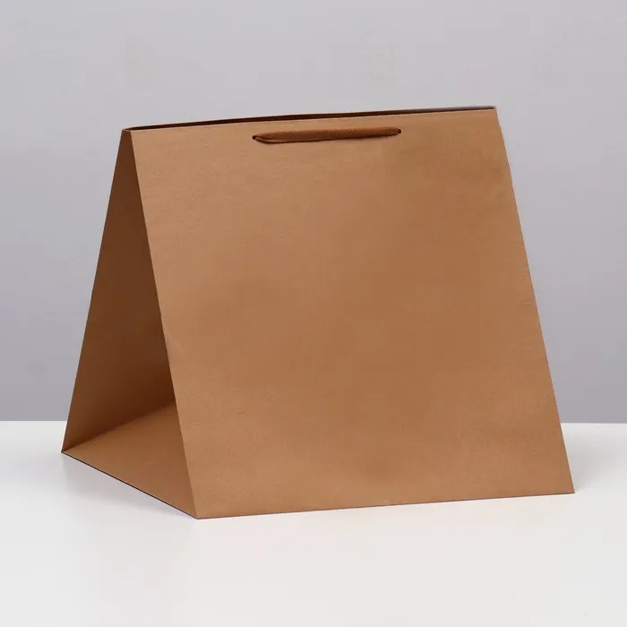 Пакет под торт с квадратным жёстким дном и ручкой-лентой из плотной бумаги — отличный выбор для упаковки и транспортировки вашего кулинарного шедевра.