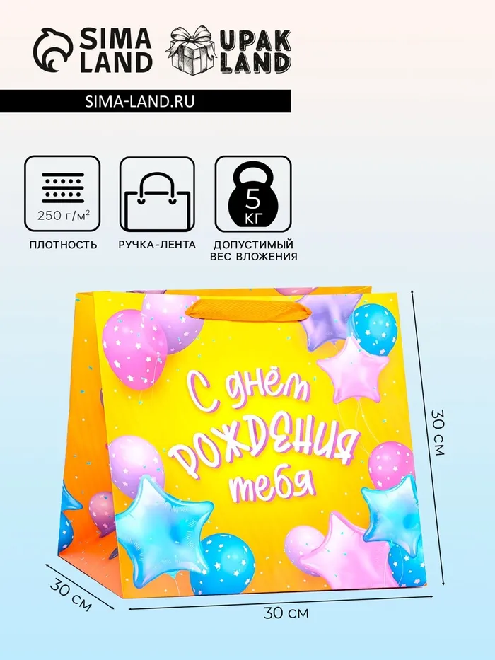 Пакет под торт «День рождения» 30×30×30 см — Характеристики