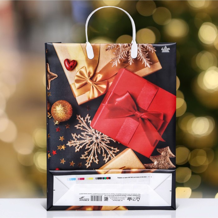 Пакет "Подарки на сером", мягкий пластик, 40 х 30 см. Новый год — Характеристики