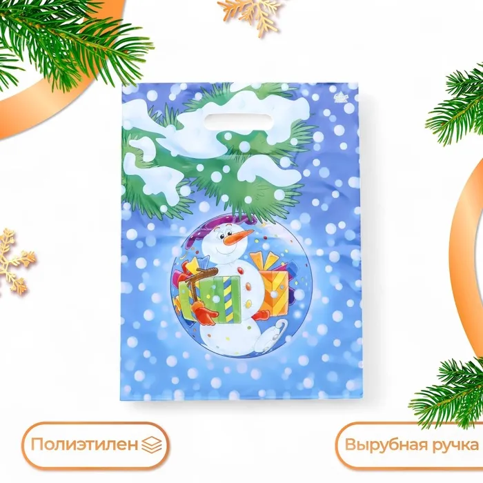 Пакет «Подарки от Снеговика», полиэтиленовый с вырубной ручкой, 40×31 см — Характеристики