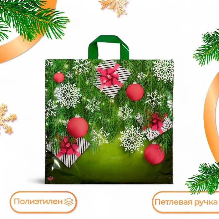 Пакет «Подарки в елках», полиэтиленовый с петлевой ручкой, 42×44 см — Характеристики