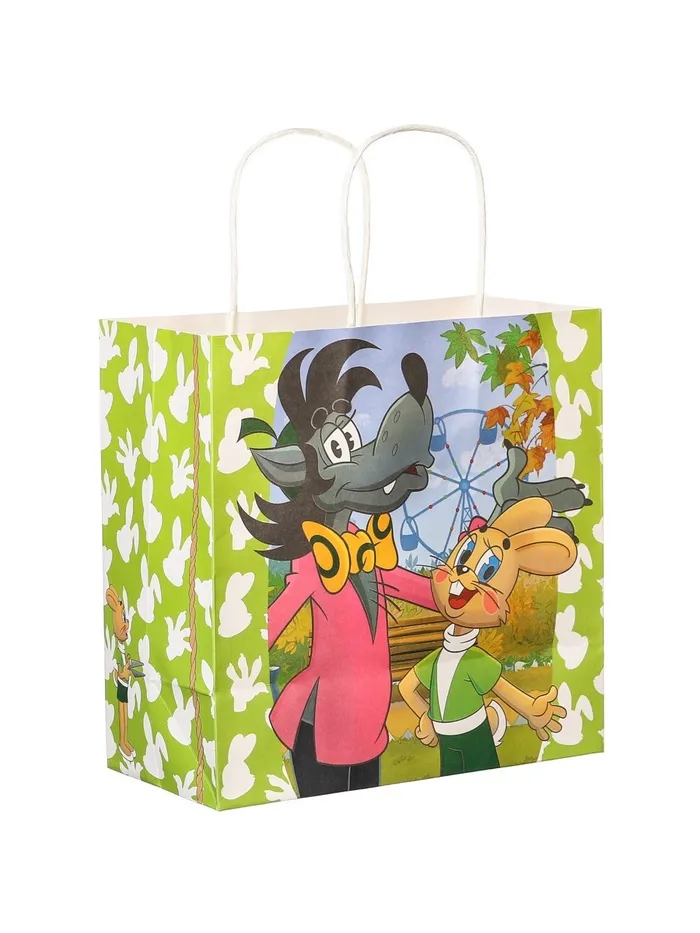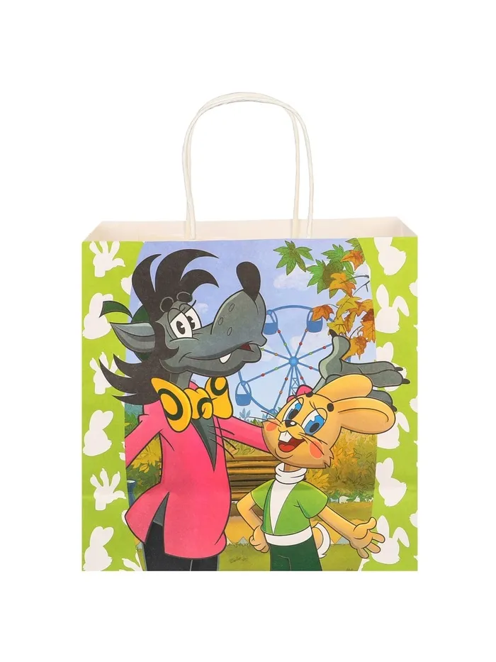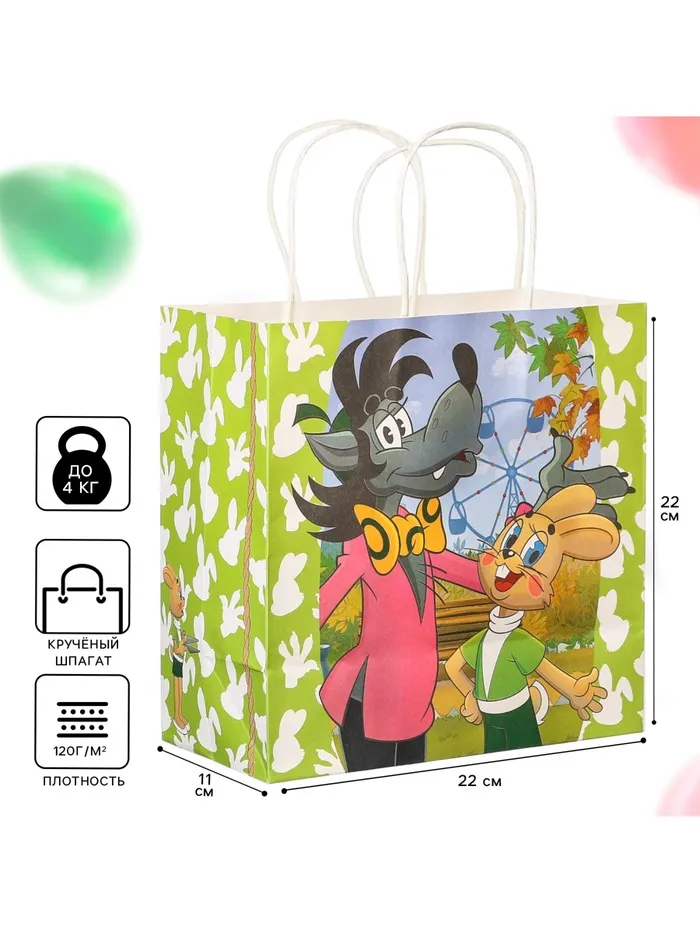 Пакет подарочный, 22х22х11 см, крафт, упаковка, Ну, погоди — Характеристики