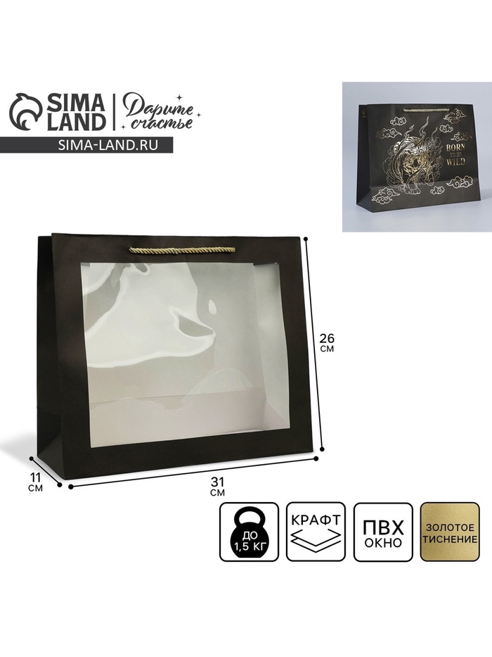 Пакет подарочный, 22×22×11 см, крафт, упаковка, Ёжик в тумане — Характеристики