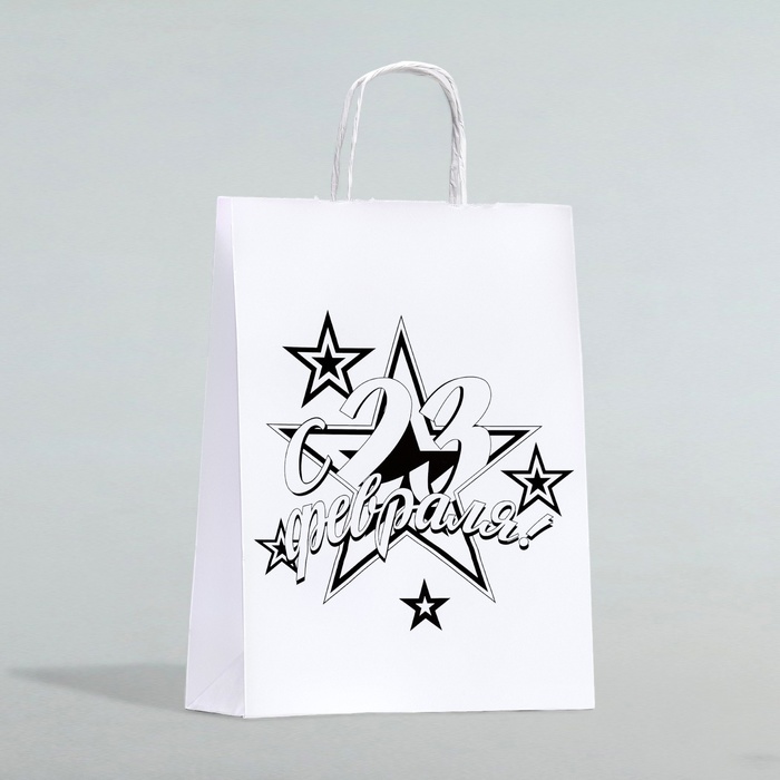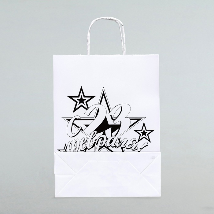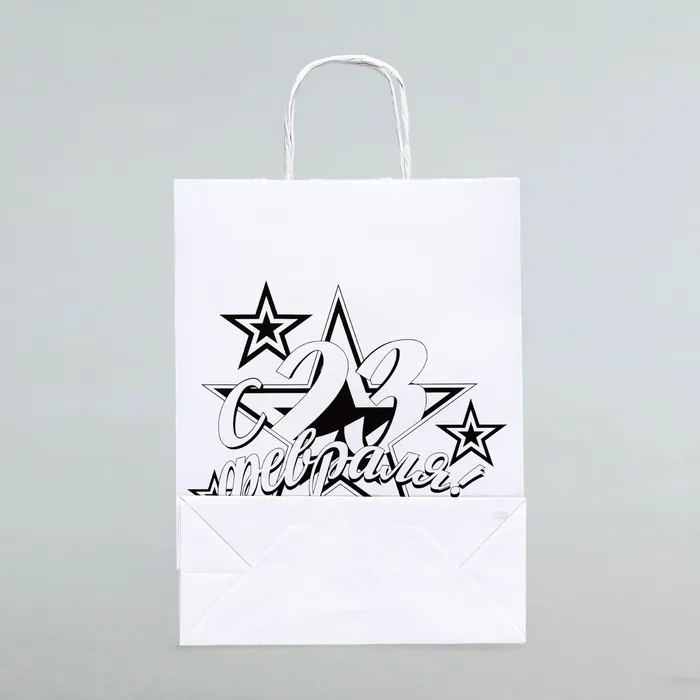 На лицевой стороне пакета изображение, связанное с 23 Февраля, что сделает ваш подарок еще более ярким и запоминающимся.