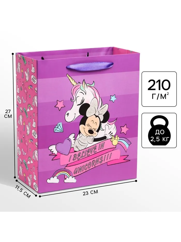 Пакет подарочный, 23х27х11.5 см, упаковка, Минни Маус и Единорог — Характеристики