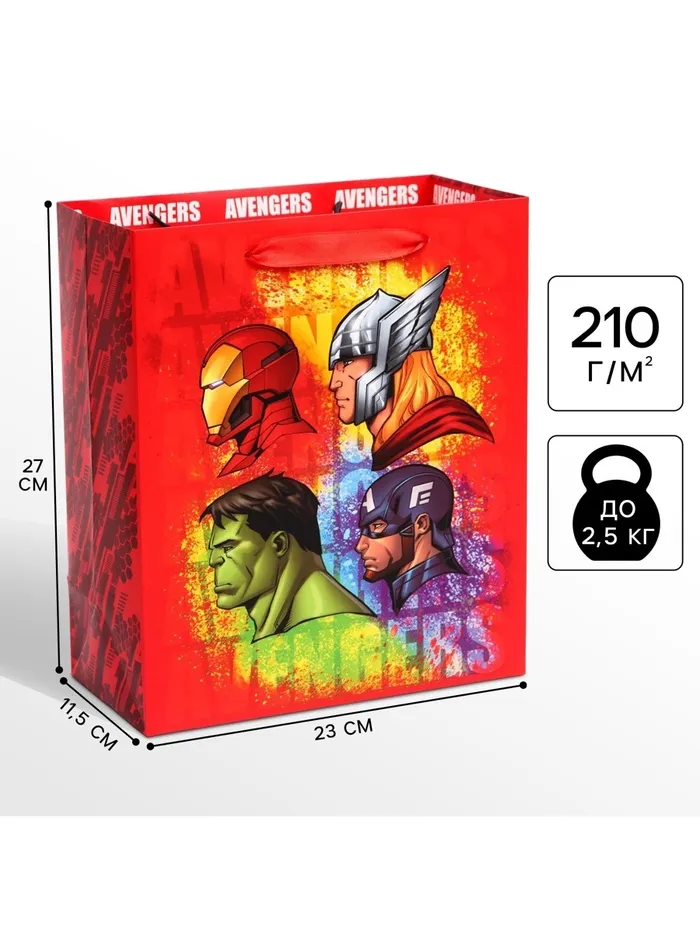 Пакет подарочный, 23х27х11.5 см, упаковка, Мстители — Характеристики