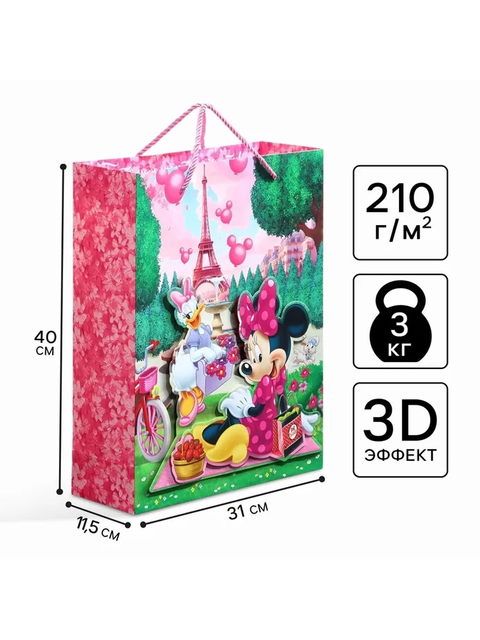 Пакет подарочный 3Д «Пусть исполняются мечты!», 40×31×11.5 см, Минни Маус — Характеристики