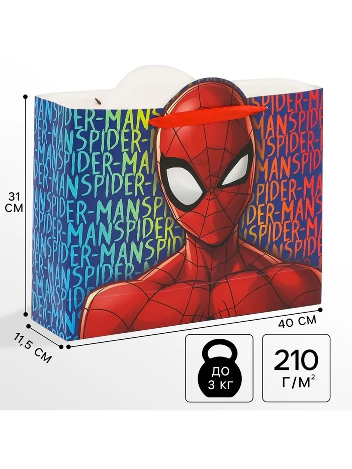 Пакет подарочный, 40х31х11.5 см, упаковка, Человек-паук — Характеристики
