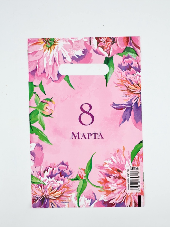 Пакет подарочный «8 Марта», полиэтиленовый с вырубной ручкой, 20×30 см, 30 мкм — Характеристики
