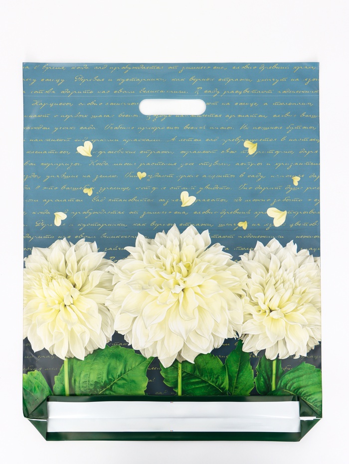Для цветочных салонов и сувенирных магазинов: Донная складка обеспечивает устойчивость на транспортных лентах. Голубой фон гармонирует с пастельной палитрой весенних коллекций. Пакет используют для упаковки парфюмерных наборов, текстильных изделий и праздничных композиций. Плотность материала соответствует стандартам профессиональной упаковки.