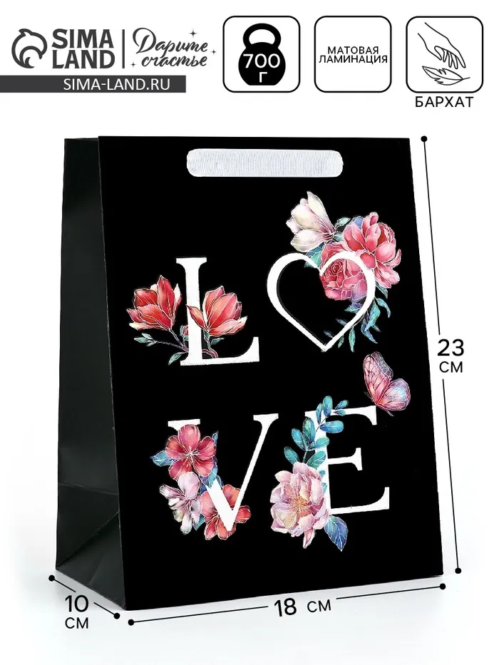 Пакет подарочный бархатный, упаковка, «Любовь», бархат, MS 18 х 23 х 10 см — Характеристики