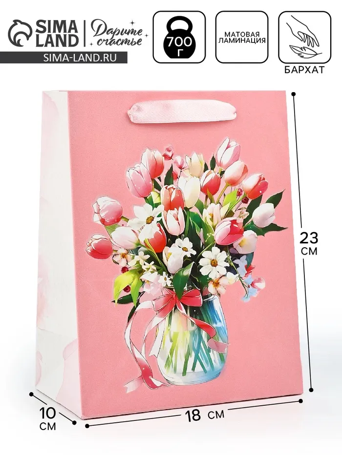 Пакет подарочный бархатный, упаковка, «Цветы», бархат, MS 18 х 23 х 10 см — Характеристики