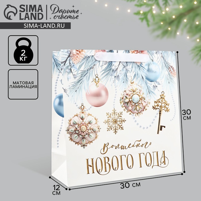 Пакет подарочный новогодний ламинированный квадратный «Волшебный праздник», 30 х 30 х 12 см