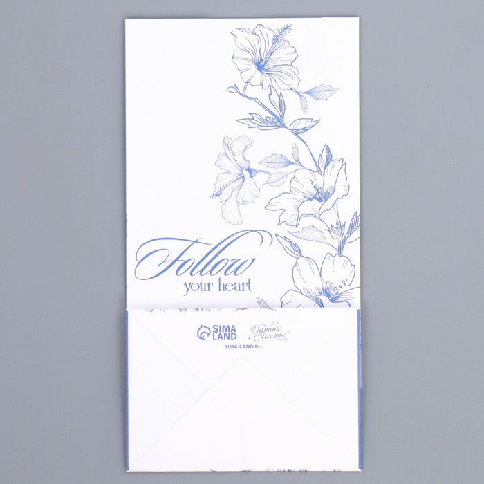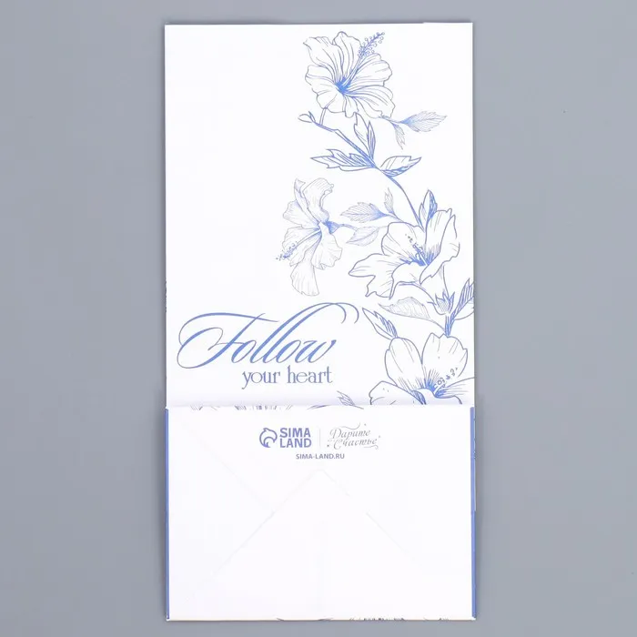 Пакет подарочный без ручек Follow your heart, 10 х 19.5 х 7 см — Характеристики
