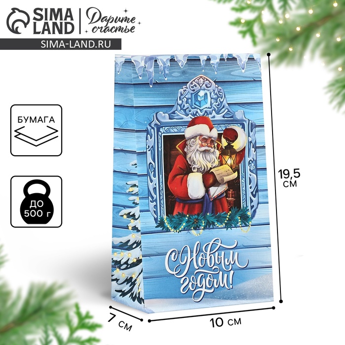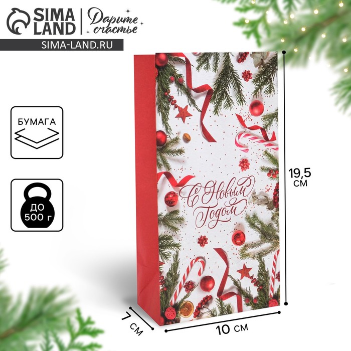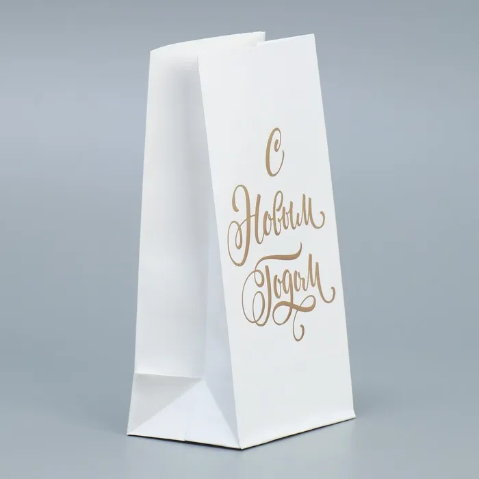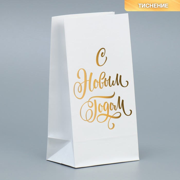 Пакет подарочный без ручек «С Новым годом», белый, с тиснением, 10 х 19.5 х 7 см — Характеристики