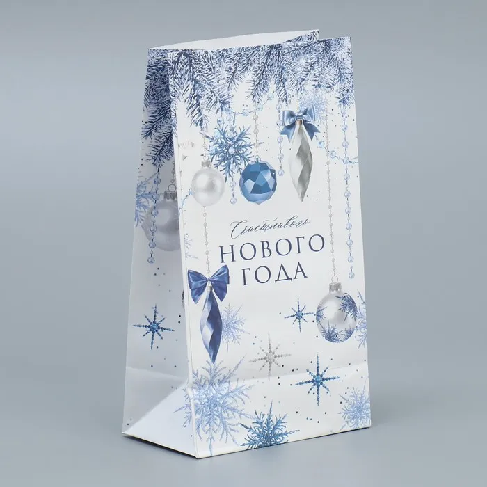 Пакет подарочный без ручек «Счастливого нового года», 10×19.5×7 см — Характеристики