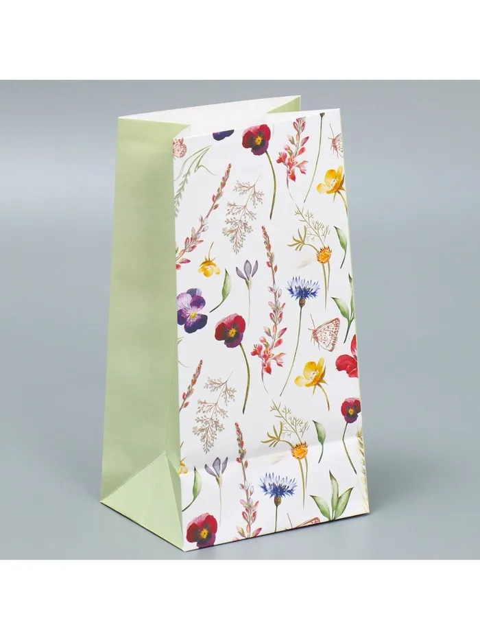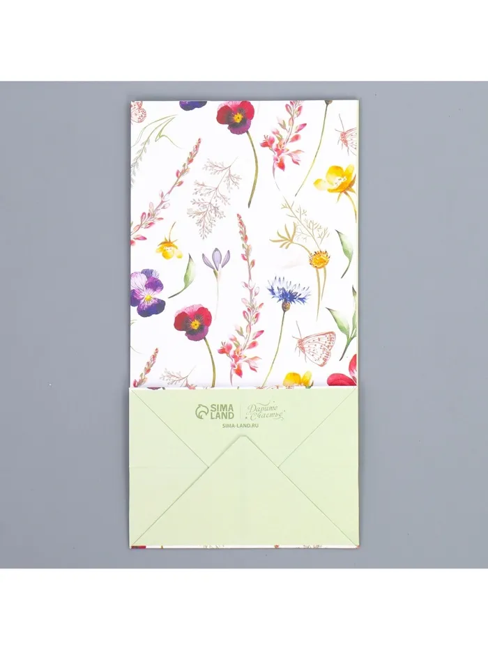 Пакет подарочный без ручек «Цветы», 10×19.5×7 см — Характеристики