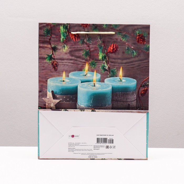 Пакет подарочный "Бирюзовые свечи", 26 х 32 х 12 см — Характеристики