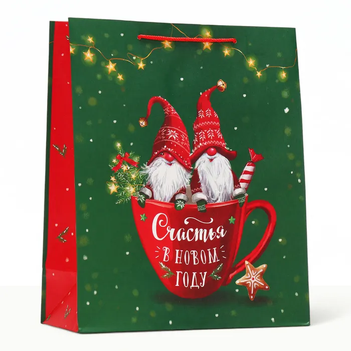 - Этот удивительный подарочный пакет станет идеальным дополнением к вашему новогоднему подарку, придавая ему шикарный и праздничный вид.