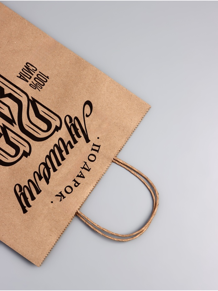 • Ручки из кручёного шпагата добавляют удобства при переноске и подчёркивают стиль.
