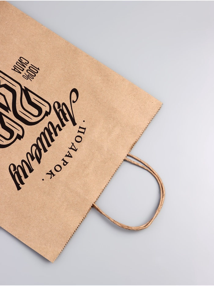 - Ручки из кручёного шпагата добавляют удобства при переноске и подчёркивают стиль.
