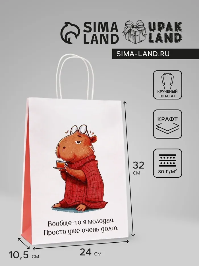 - Яркое изображение очаровательной капибары в сочетании с весёлыми надписями поднимает настроение и делает ваш подарок ещё более запоминающимся.