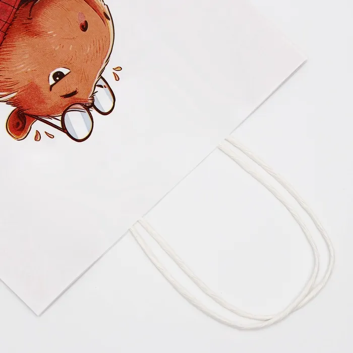 - Пакет выполнен из прочной крафт-бумаги, что гарантирует его долговечность, а удобные ручки обеспечивают комфорт при переноске.