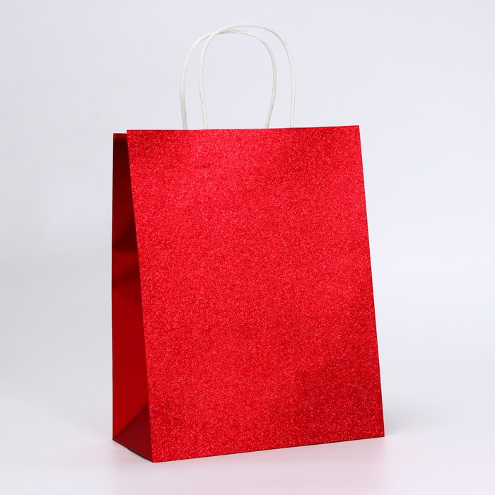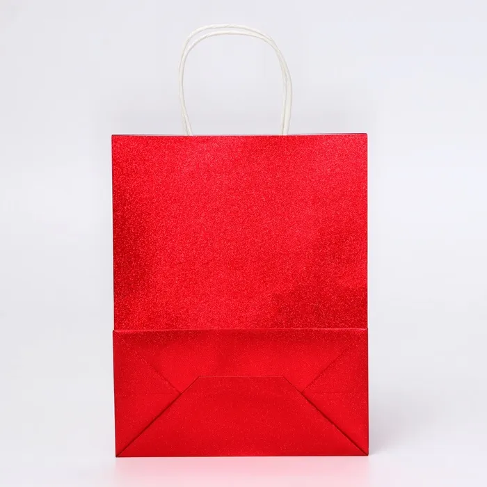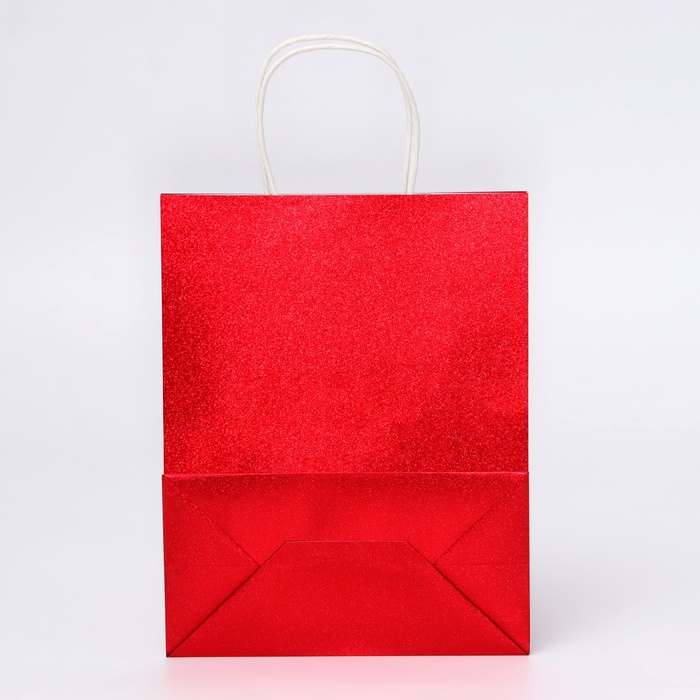 Пакет подарочный бумажный с глиттером красный, 21×11×27 см