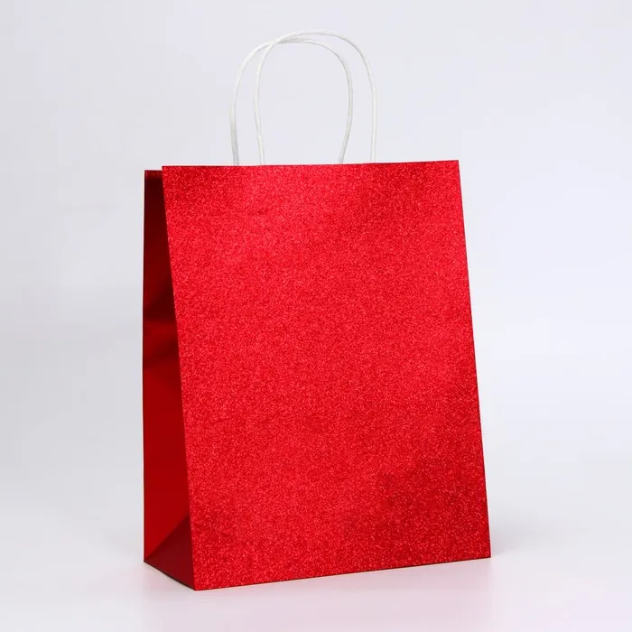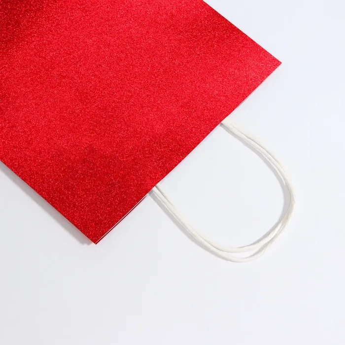 Пакет подарочный бумажный с глиттером красный, 21×11×27 см — Характеристики