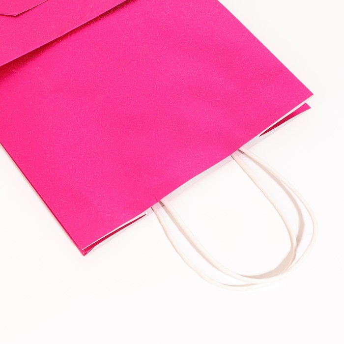 Глиттерное покрытие добавляет пакету блеска и шика, делая его особенным и подходящим для различных торжественных случаев — будь то день рождения, Новый год, свадьба или любой другой праздник. Благодаря оптимальным размерам, пакет идеально подходит для упаковки небольших предметов, таких как косметика, аксессуары, сувениры или подарочные наборы.